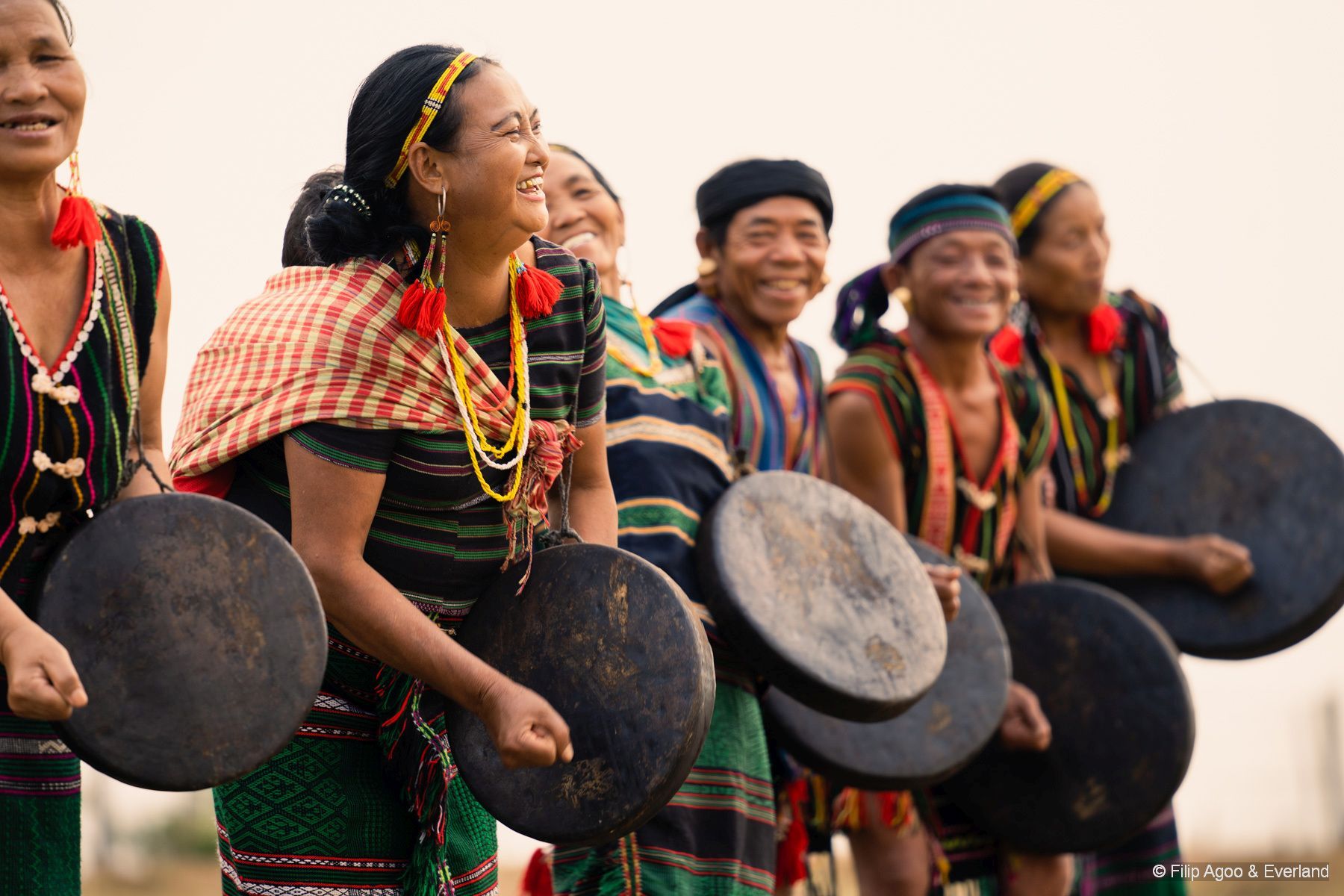 Bunong community members in traditional dress for International Day of the World's Indigenous Peoples in Mondulkiri, Cambodia.